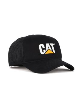 CAT LOGO MESH BACK FOAM HAT PITCH BLACK-TRADEMARK OS
