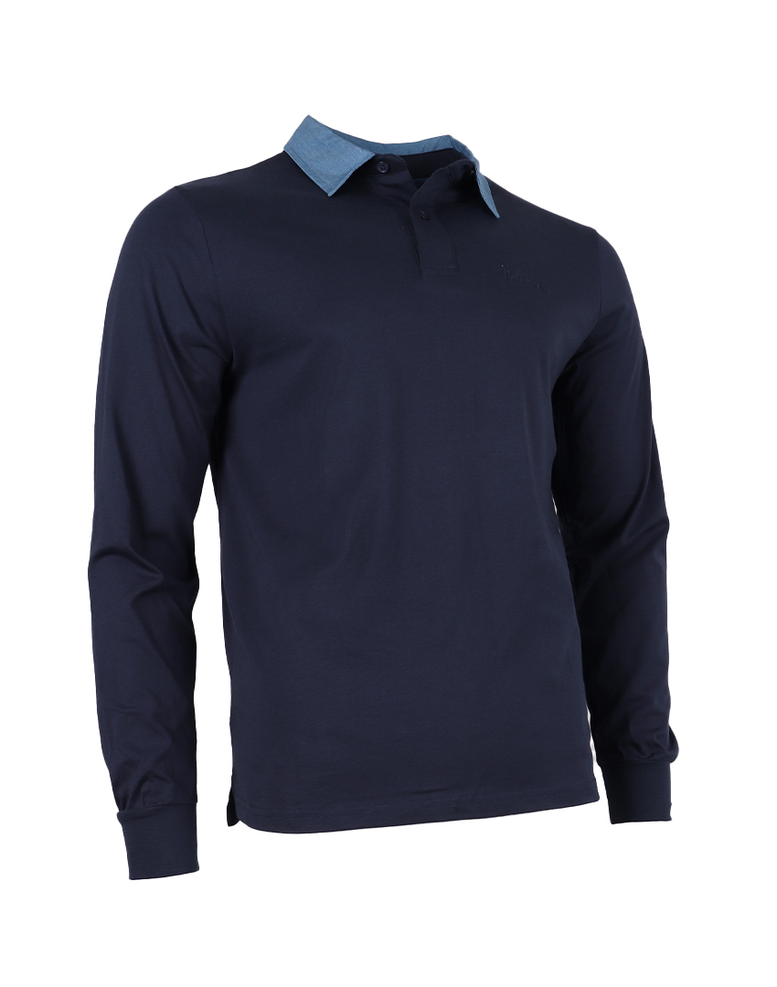 بولو بكم طويل من بالومينو مصنوع من قماش قطني 100% العنق من قماش الجينز الخفيف و مزود بشريط مطاطي في نهاية الاكمام تفصيلة مريحة و يأتي باربع الوان جميلة لوجو خفيف مطرز على الصدر الايسر