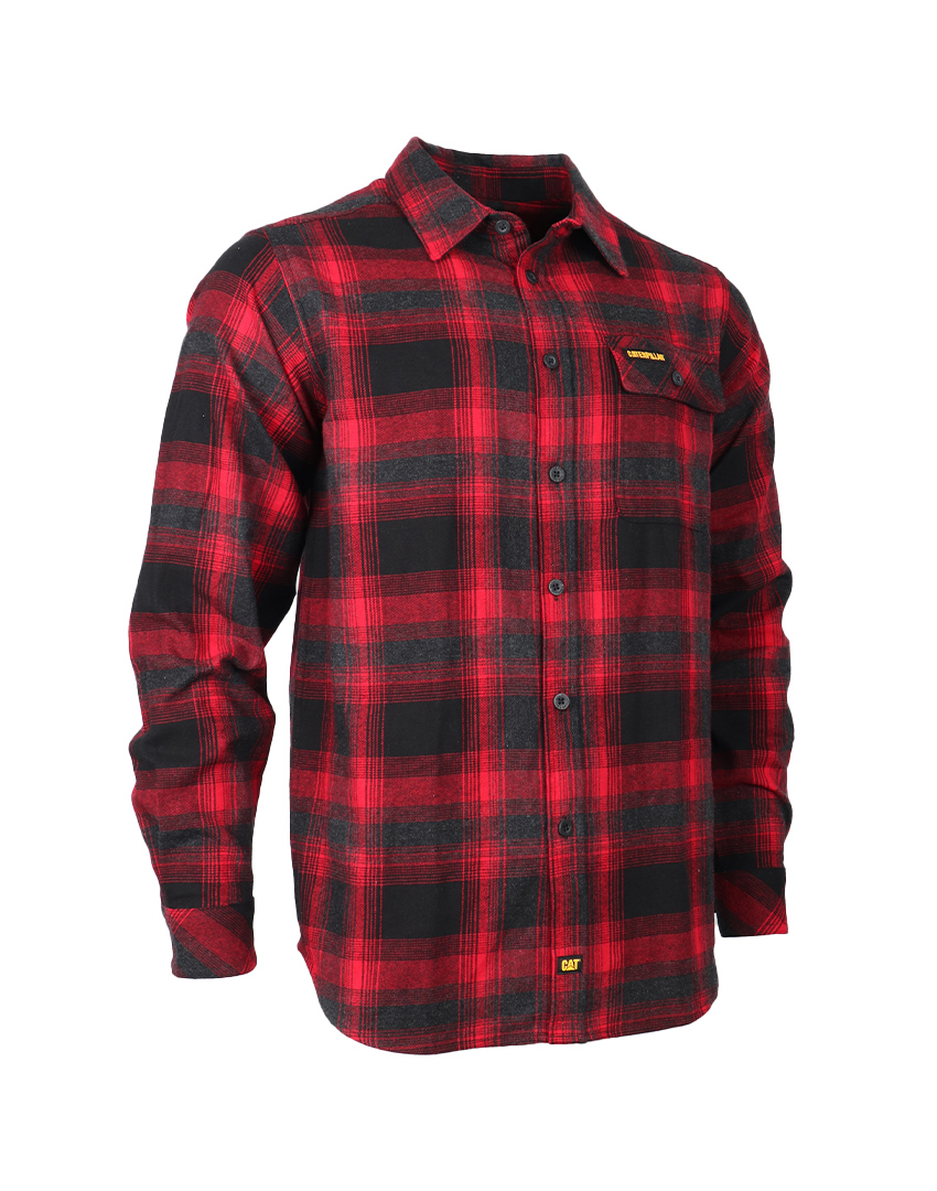 قميص من كات باكمام طويلة به جيب في الجيهة اليسرى من قماش فلانيل، 100٪ قطن