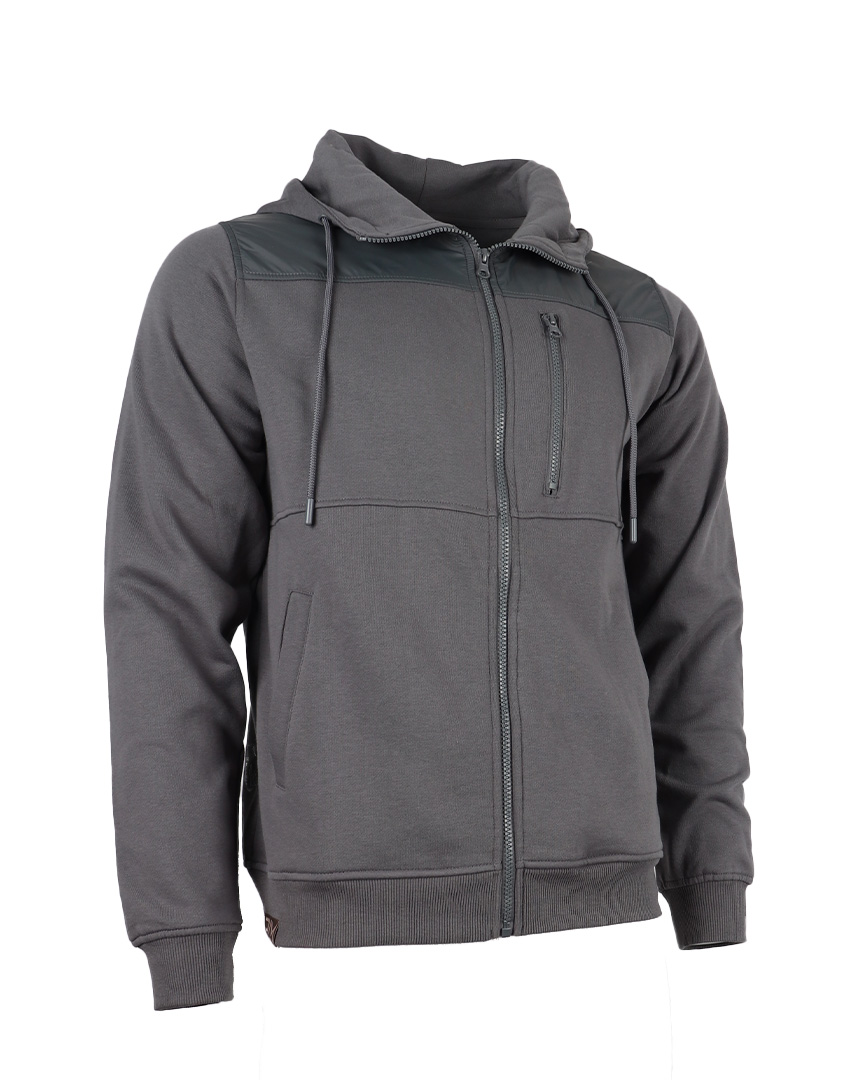 توب هوودي شتوي من بالومينو من قماش ناعم 80% قطن و 14% بوليستر و مزود ب 6% من السباندكس لضمان المرونة للقماش بعد الغسيل يقفل بسحاب كامل و مزود بجيبين لتدفئة اليدين و جيب على الصدر يقفل بسحاب اللوجو مطرز على قطعة من القماش و مثبت على حافة الحزام السفلية كما تغطي منطقة الكتفين و اعلى الظهر بقماش من النايلون لحمايتك من البلل و يضفي لمسة فريدة على القطعة.